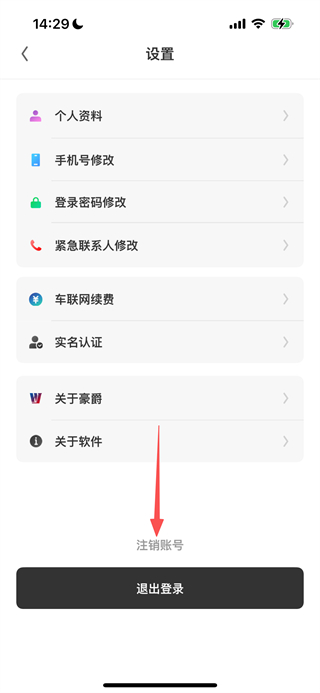 3、在设置页面点击注销账号选项,进入账号注销协议页面。