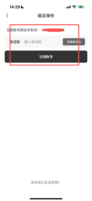 5、在验证身份页面输入验证码后,点击注销账号完成操作。