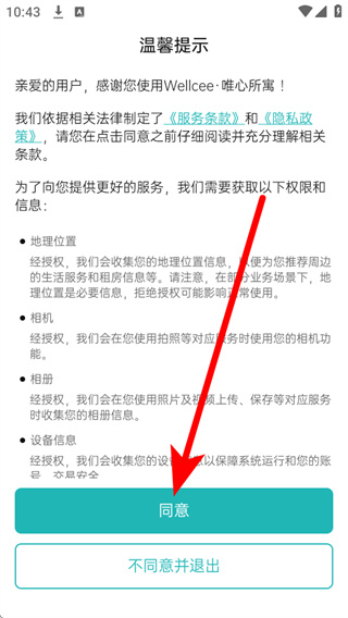 1、打开唯心所寓,进入后弹出弹窗,点击弹窗中的同意,进入应用首页。