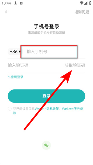3、在手机号登录页面,填写自己的手机号码,点击获取验证码按钮。