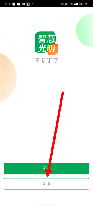 1、打开智慧光明页面,点击注册,进入注册页面。
