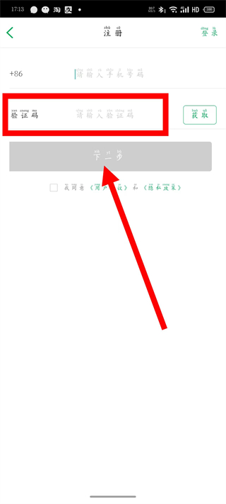 3、在输入框中,输入验证码,进入设置登录密码页面。