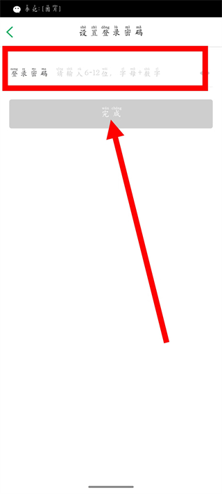 4、在设置登录密码页面,在输入框设置符合要求的密码,点击完成注册。