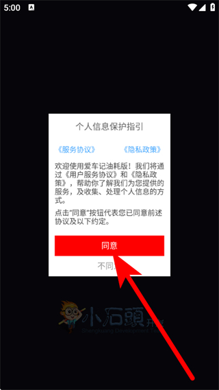 1、打开爱车记油耗版,点击弹窗同意,进入后续页面。