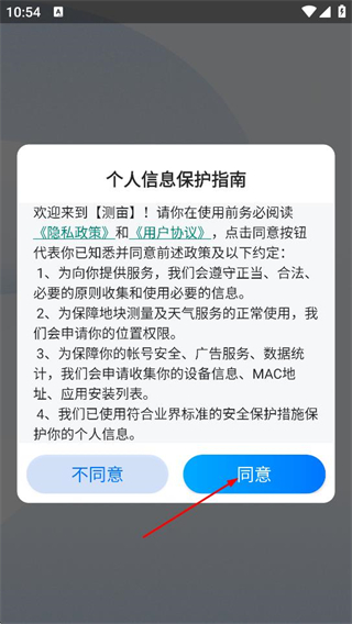 1、在个人信息保护指南弹窗中,点击同意,进入测亩的登录选择页面。