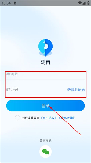 3、在界面,填写手机号和验证码,点击登录完成测亩账号的登录操作。