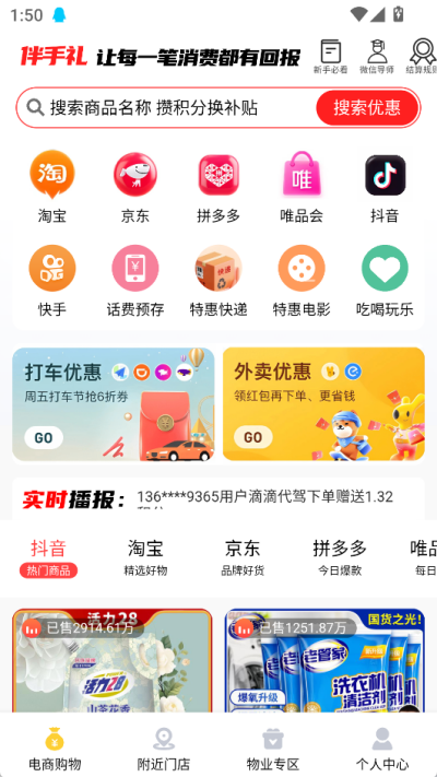 在这里可以搜索淘宝、京东、拼多多、唯品会和抖音等优惠福利,方便大家在里面获取更多奖励