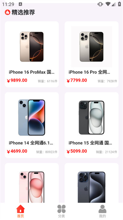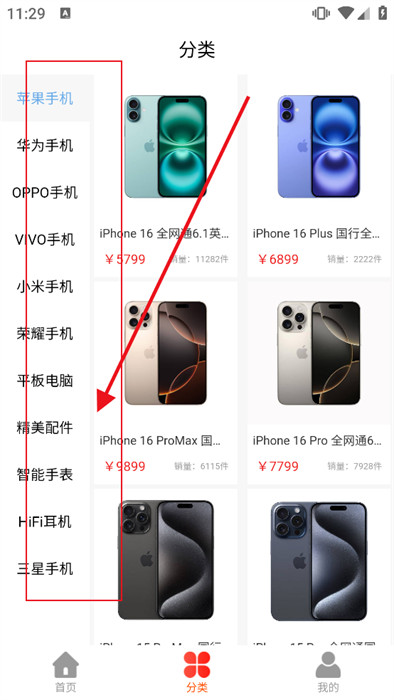 3、接着,切换到【分类】页面,这里为了让大家快速的筛选手机品牌,专门进行了分类;