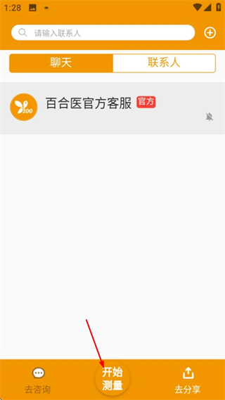 1、在聊天页面点击开始测量选项,进入健康数据页面。