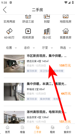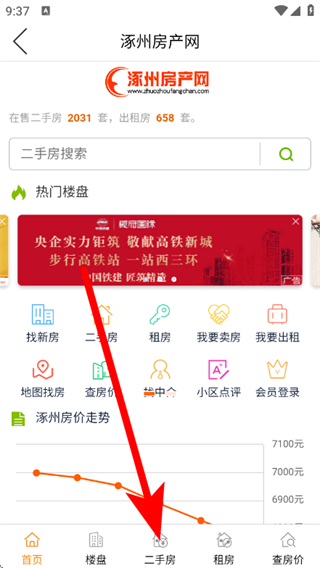 1、打开涿州房产网,点击底部的二手房,进入二手房列表页面。
