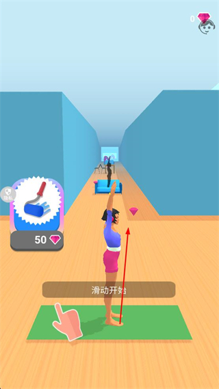 2、滑动后操控角色移动,在通道中收集沿途的粉色宝石,同时保持角色的伸展动作。