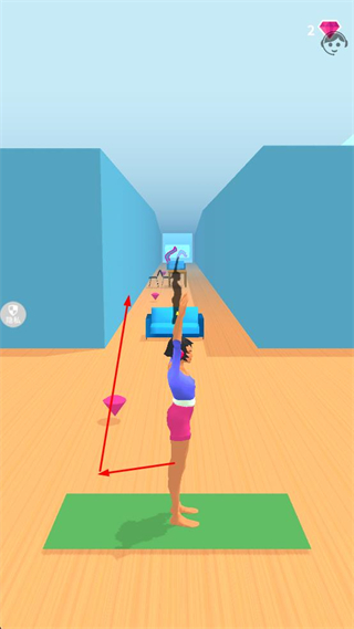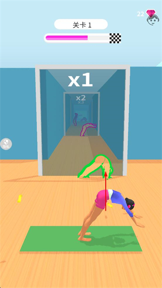 3、跟随通道内的动作提示,让角色做出对应的瑜伽姿势,通过标有倍数的区域积累进度。