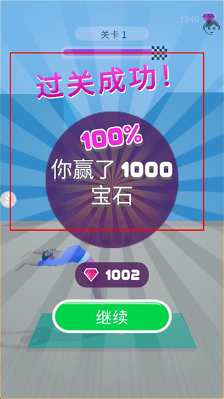 4、完成关卡要求的动作和进度积累,等待界面显示过关成功提示,随后点击继续按钮。