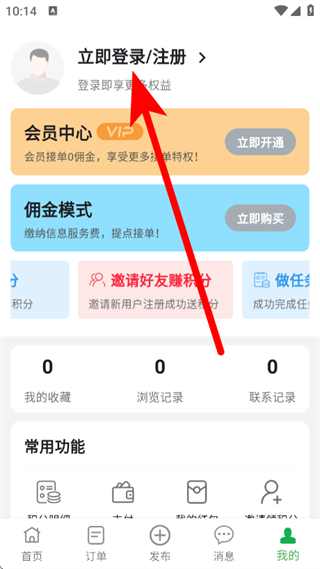 2、在我的页面,点击立即登录注册,进入手机号登录页面。