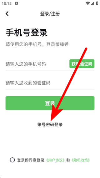 3、在手机号登录页面,点击账号密码登录,进入账号密码登录页面。