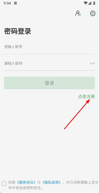 1、在密码登录页面点击注册选项,进入注册账号页面。