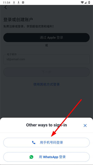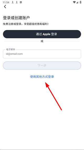 1、进入Agoda安可达的登录界面后,点击使用其他方式登录选项,展开更多登录方式。