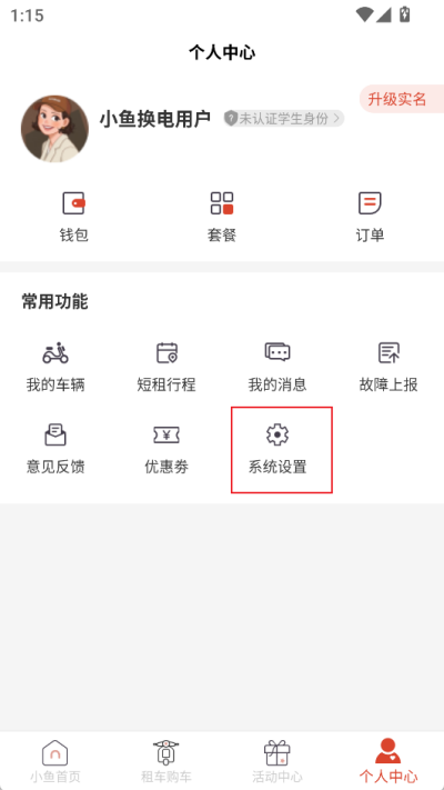 2、点击后进入个人中心界面,找到下方的【系统设置】选项并点击;