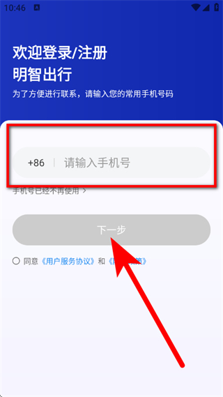 1、打开明智出行,在弹窗点击同意,进入欢迎登录注册页面。