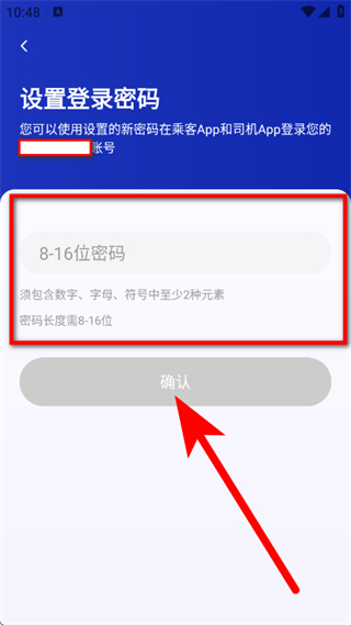 4、在设置登录密码页面,设置密码,点击确认,完成注册登录。