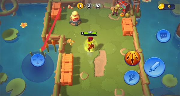 1、在进入到关卡中时,可通过左侧的方向键按钮,控制角色在场景内移动。
