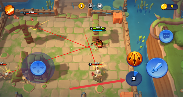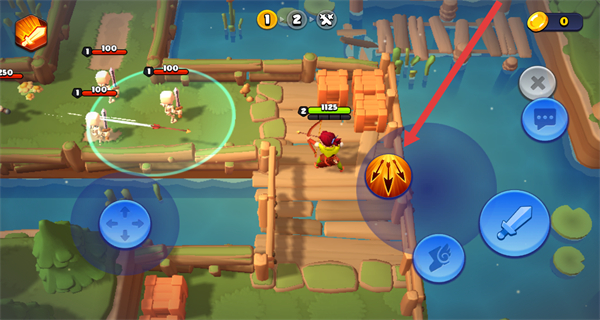 3、拖动右侧的范围攻击按钮,释放技能对区域内的敌人造成伤害。