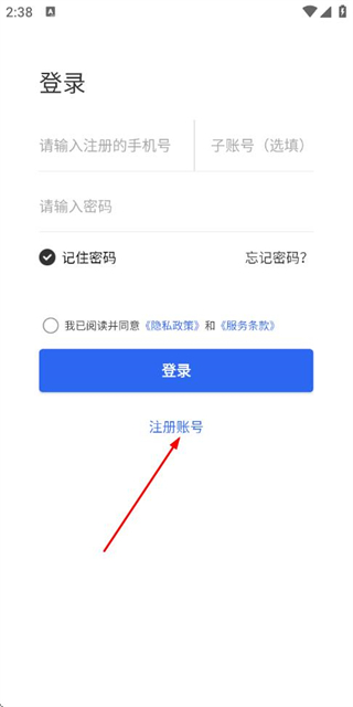 1、在登录页面点击注册账号选项,进入注册账号页面。