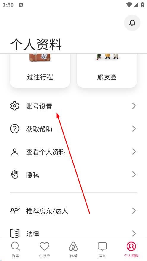 1、打开爱彼迎APP后,点击底部导航栏的个人资料选项,进入个人操作界面。