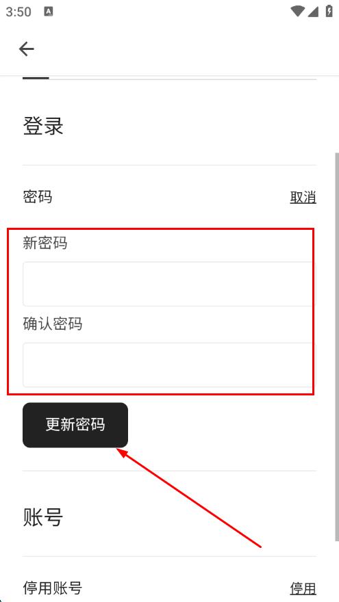 5、输入新密码并再次确认密码,点击更新密码按钮,即可完成密码设置。