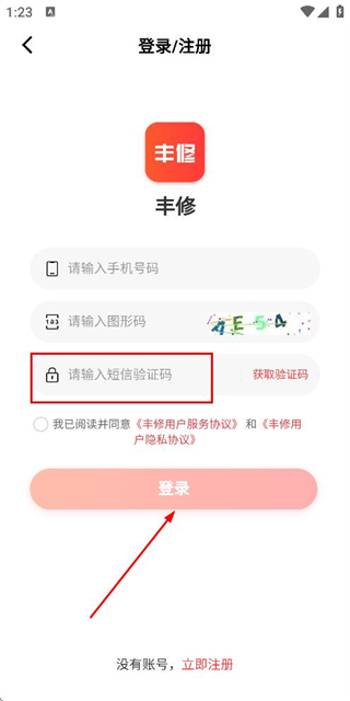 3、在验证码输入框中填写验证码,点击登录完成账号的登录操作。