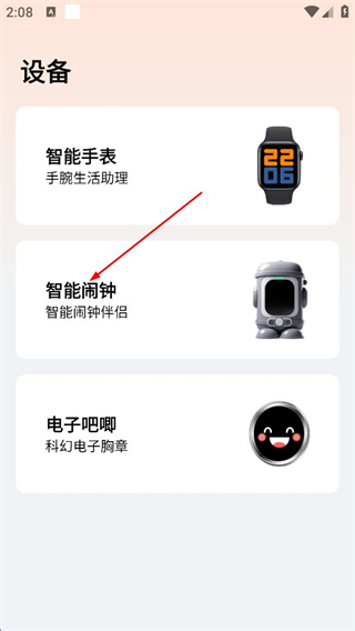 1、在设备列表页,点击智能闹钟选项,进入该设备的管理页面。