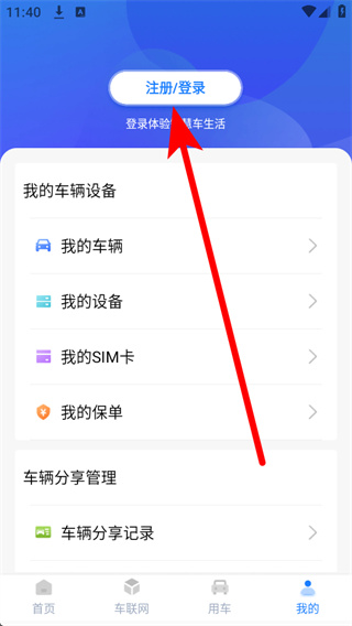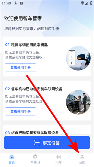 1、打开智车管家,点击底部导航栏的我的,进入个人中心页面。