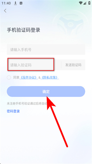5、将收到的短信验证码填入验证码栏,勾选相关协议后,点击确定,即可完成短信登录。
