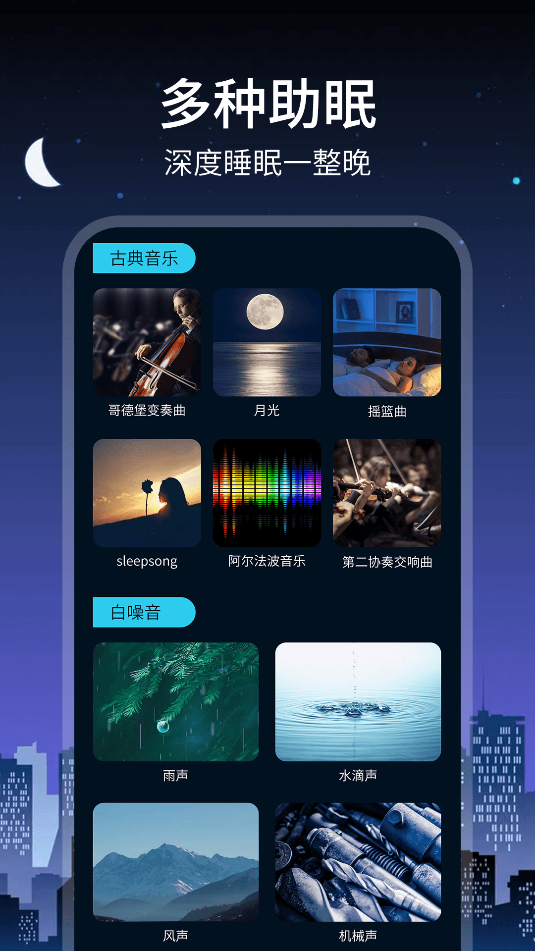 3、多种助眠:多种助眠音乐和冥想练习,放松心情,迅速入眠,让夜晚安静祥和;