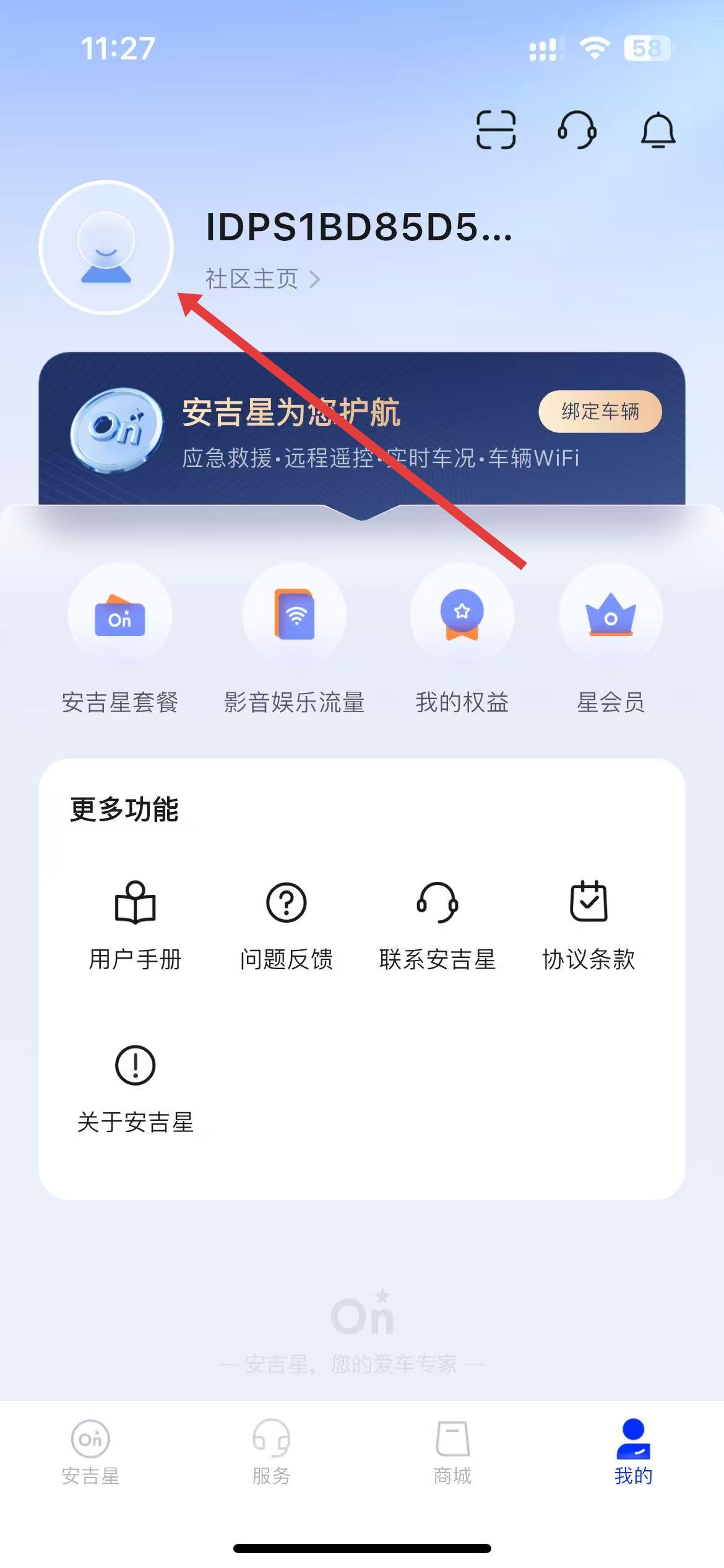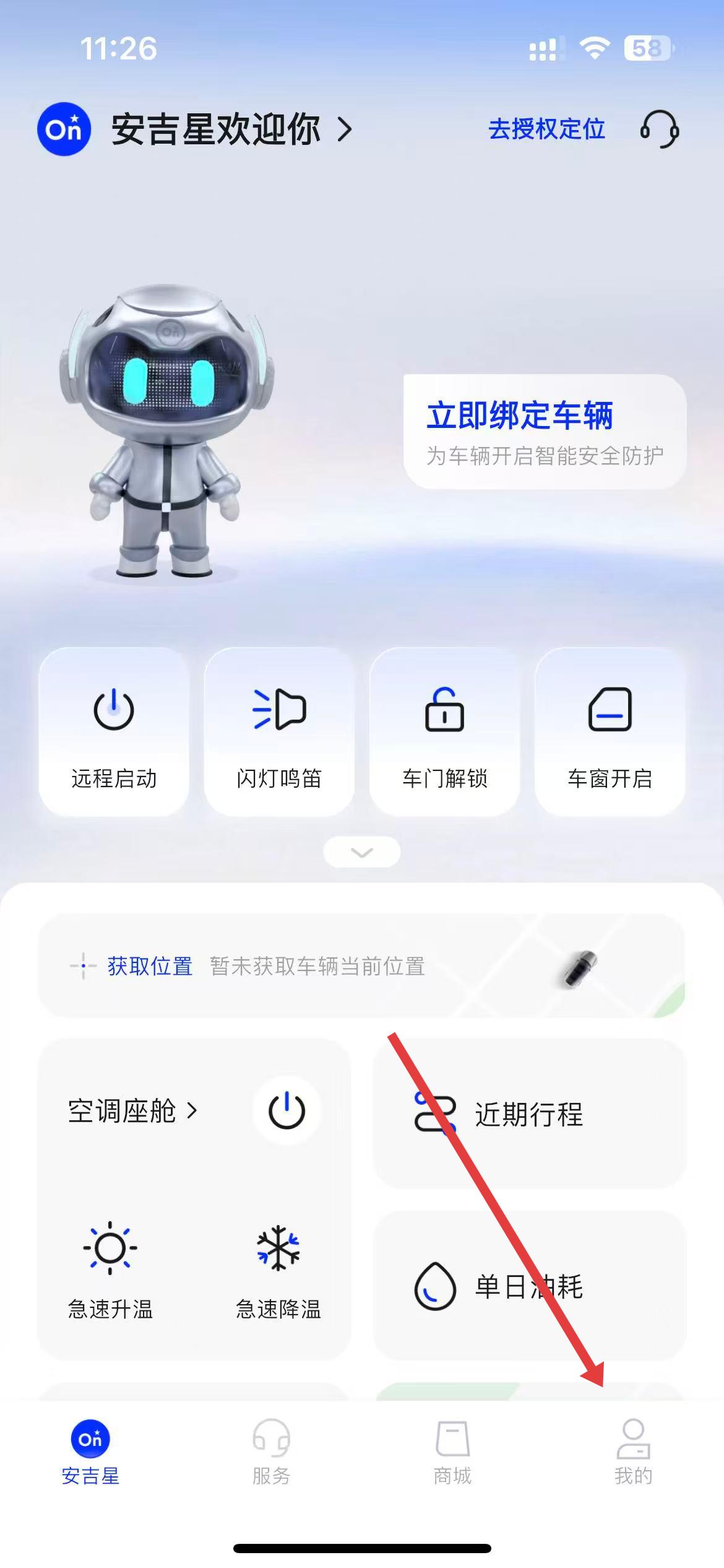 1、打开安吉星APP,点击底部导航栏中我的选项,进入个人相关页面。