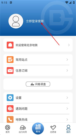 2、在个人中心页面,点击立即登录使用,进入北京地铁APP的登录页面。
