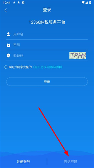 2、在12366纳税服务平台的登录界面,找到底部忘记密码选项并点击,进入密码找回页面。