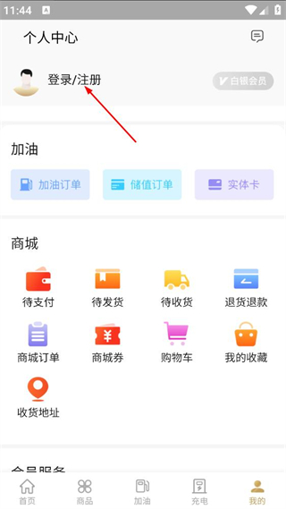2、在个人中心页面,点击登录/注册区域,进入授权登录页面。