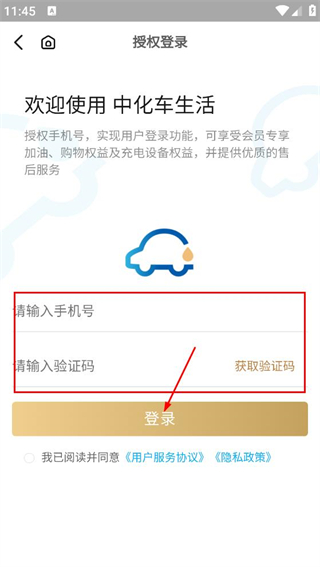3、在授权登录页,填写手机号和验证码,点击登录,完成登录。