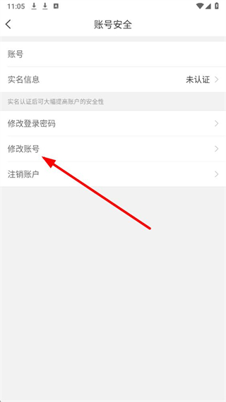 3、在账号安全页面里,选择修改账号选项,进入修改账号的操作流程页面。