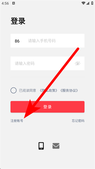 1、打开红树河熊,在登录页面,点击注册账号,弹出注册方式。