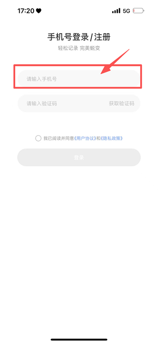 2、在手机号登录/注册页面,填写手机号,准备获取对应的登录验证码。