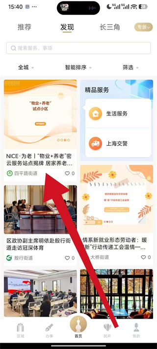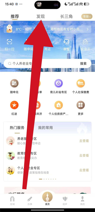 1、打开上海人社,点击顶部导航栏的发现标签,进入发现页面。