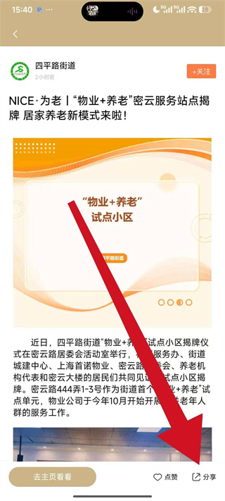 3、在文章详情页的底部,点击分享按钮,弹出分享选项的操作弹窗。