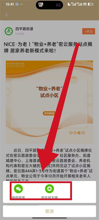 4、在分享选项弹窗中,选择好友或朋友圈,即可将文章分享至微信平台。