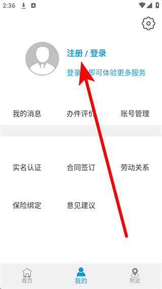 3、在个人中心页面点击注册登录区域,进入账号登录界面。