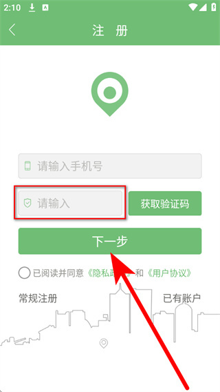 4、将收到的短信验证码填入框,勾选相关协议,最后点击下一步完成后续注册流程。