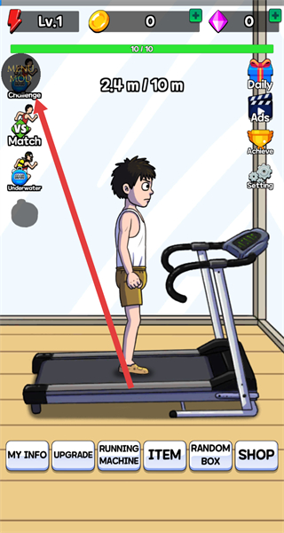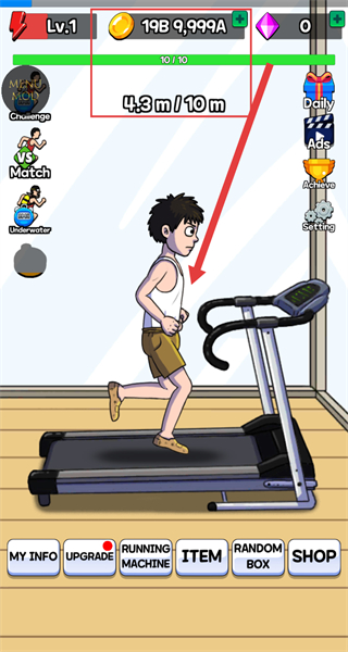 3、返回跑步界面,点击屏幕操控角色跑步,达成目标距离,即可获取无限金币。