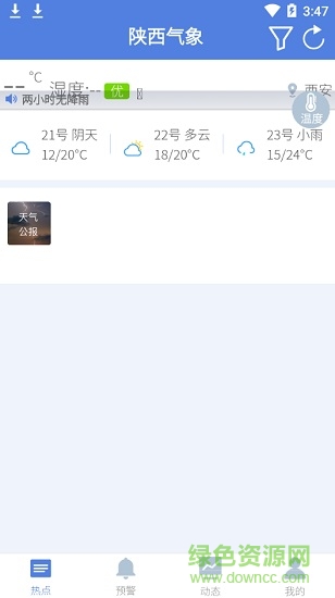 陕西气象决策版安卓版是一款功能强大的天气查询app。为用户提供了24小时气象信息查询服务,可以快速获取最新的天气状况数据信息。支持未来15天气象查询。方便用户及时了解当前天气状况!欢迎在绿色资源网下载使用。