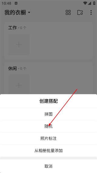 3、在创建搭配菜单中,选择随机选项,进入随机搭配规则页面。